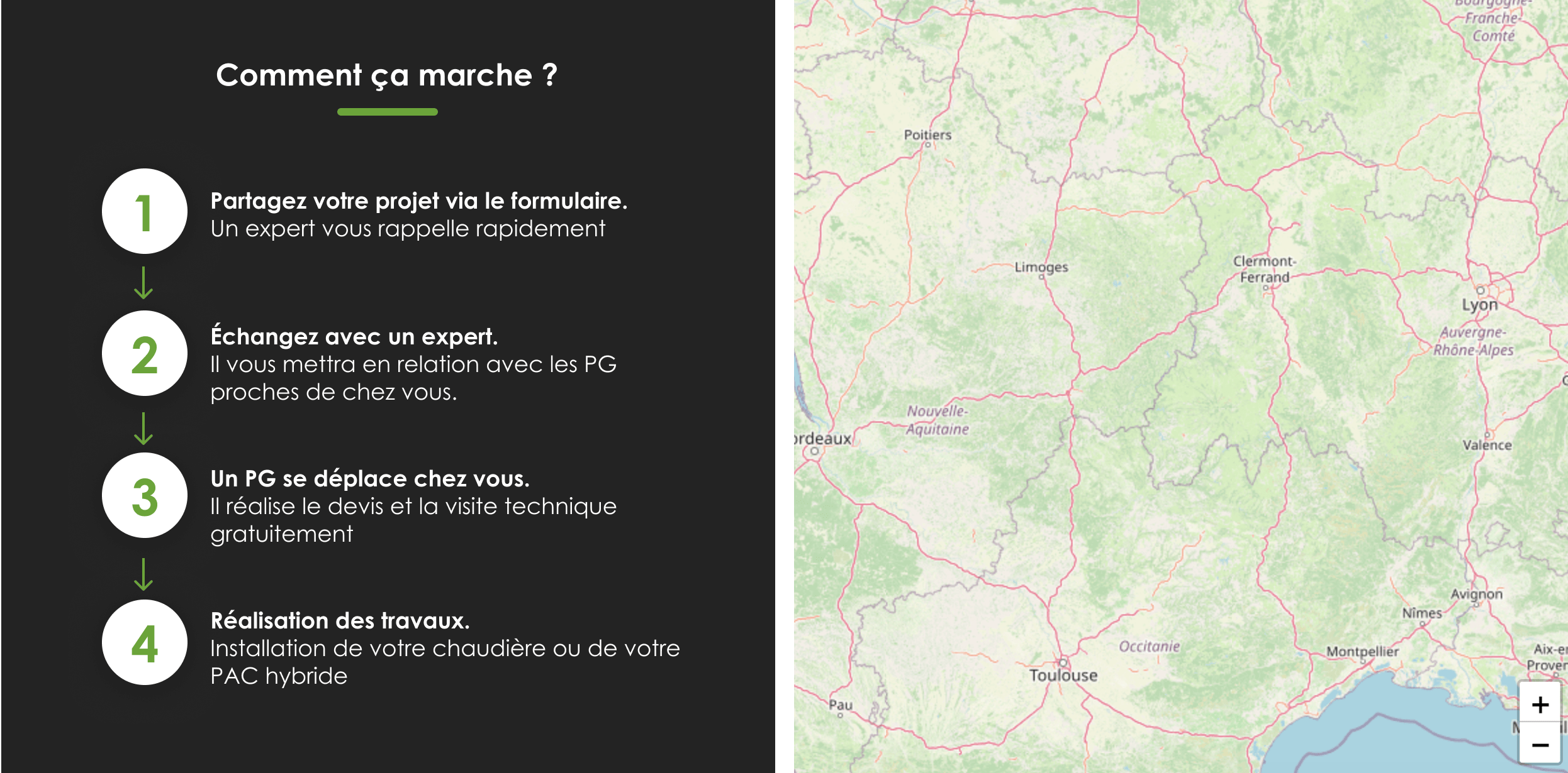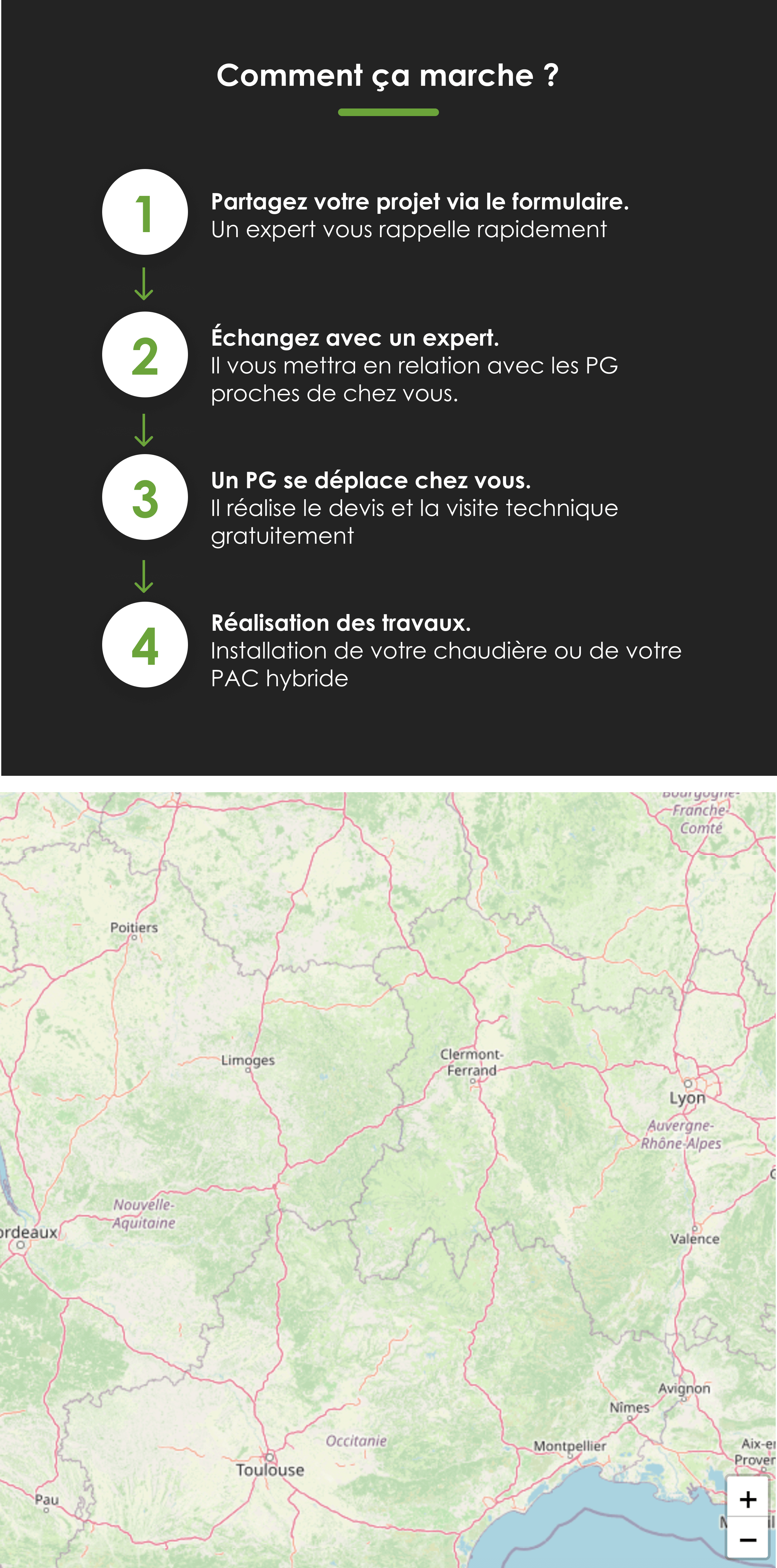 (4) Les données que vous renseignez dans ce formulaire feront l’objet d’un traitement dans le cadre du recontacte par un expert GRDF. Les données collectées ne seront utilisées que par GRDF en qualité de responsable de traitement, et le cas échéant par les installateurs Professionnels du Gaz (PG), uniquement pour la finalité d’information et d’accompagnement sur votre projet gaz. Vos données recueillies via ce formulaire sont traitées sur la base de votre consentement. Les champs marqués d’un astérisque (*) sont obligatoires et le défaut de réponse a pour conséquence l’impossibilité pour GRDF de vous recontacter. Les données seront conservées pendant la durée du traitement de la demande ou dans tous les cas pour une durée ne pouvant excéder trois (3) années après leur date d’enregistrement. Conformément à la réglementation applicable, vous disposez notamment d’un droit d’accès, de rectification, de modifications et de suppression concernant les données qui vous concernent. Pour exercer vos droits ou pour toute question sur le traitement de vos données dans ce dispositif, vous pouvez écrire par courrier à GRDF Service Client Correspondant Informatique et Libertés TSA 85101 27091 EVREUX CEDEX ou protectiondesdonnees@grdf.fr A la suite de ce contact, si vous estimez que vos droits ne sont pas respectés après nous avoir contactés, vous pouvez introduire une réclamation auprès de la CNIL. Pour en savoir plus sur la politique de confidentialité des données de GRDF, vous pouvez vous rendre sur : grdf.fr/charte-confidentialite En tant que consommateur, si vous ne souhaitez pas faire l’objet d’un démarchage téléphonique, vous pouvez vous inscrire gratuitement sur www.bloctel.gouv.fr